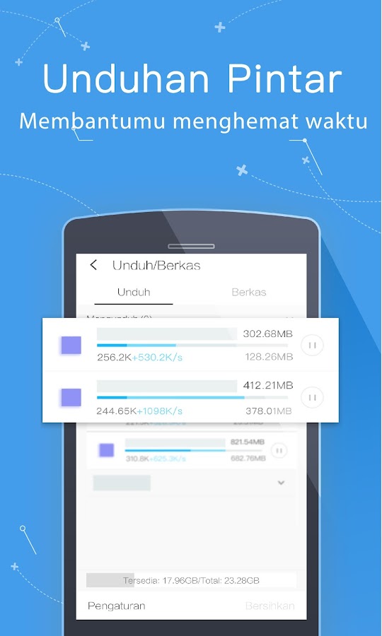 Server kami mempercepat dan menstabilkan unduhan. Sebagai tambahan, dikala terjadi gangguan koneksi, UC Browser akan melanjutkan unduhan dari titik pause.
