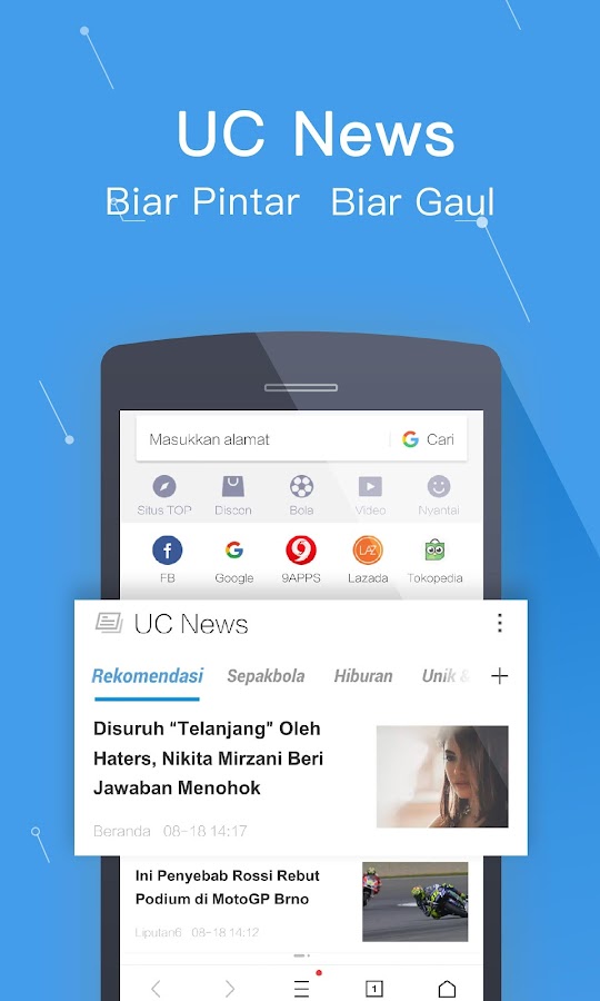 Dengan riwayat tanpa "hang" UC Browser. Navigasi sangat lancar.